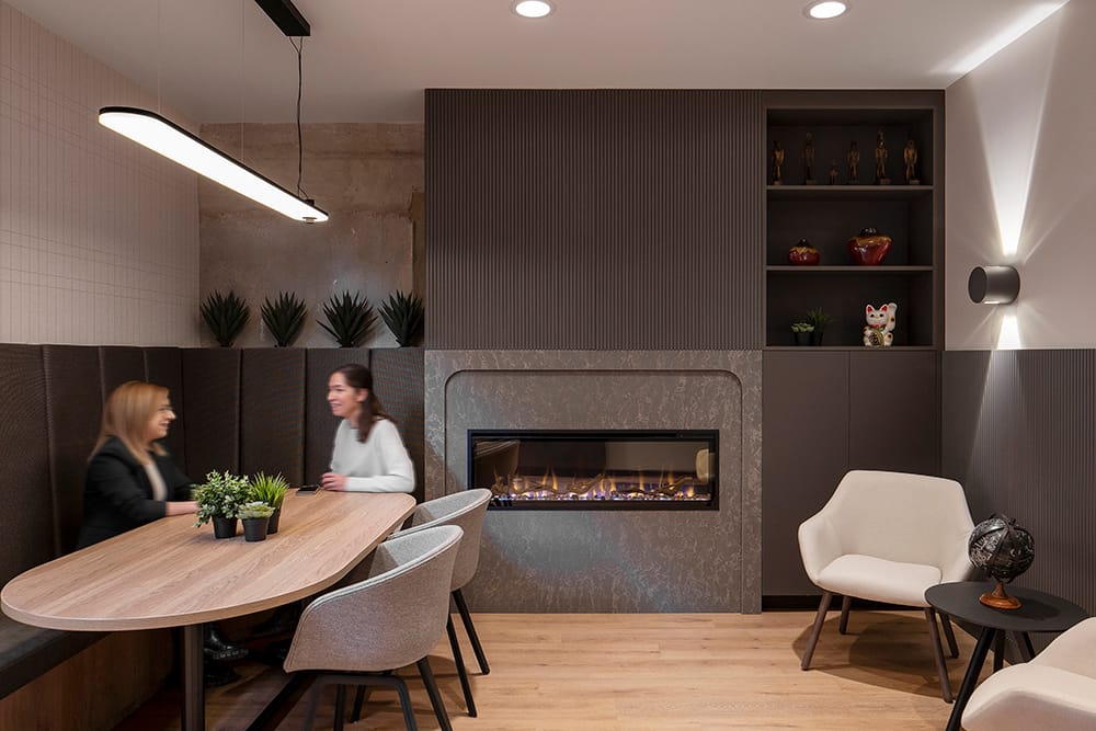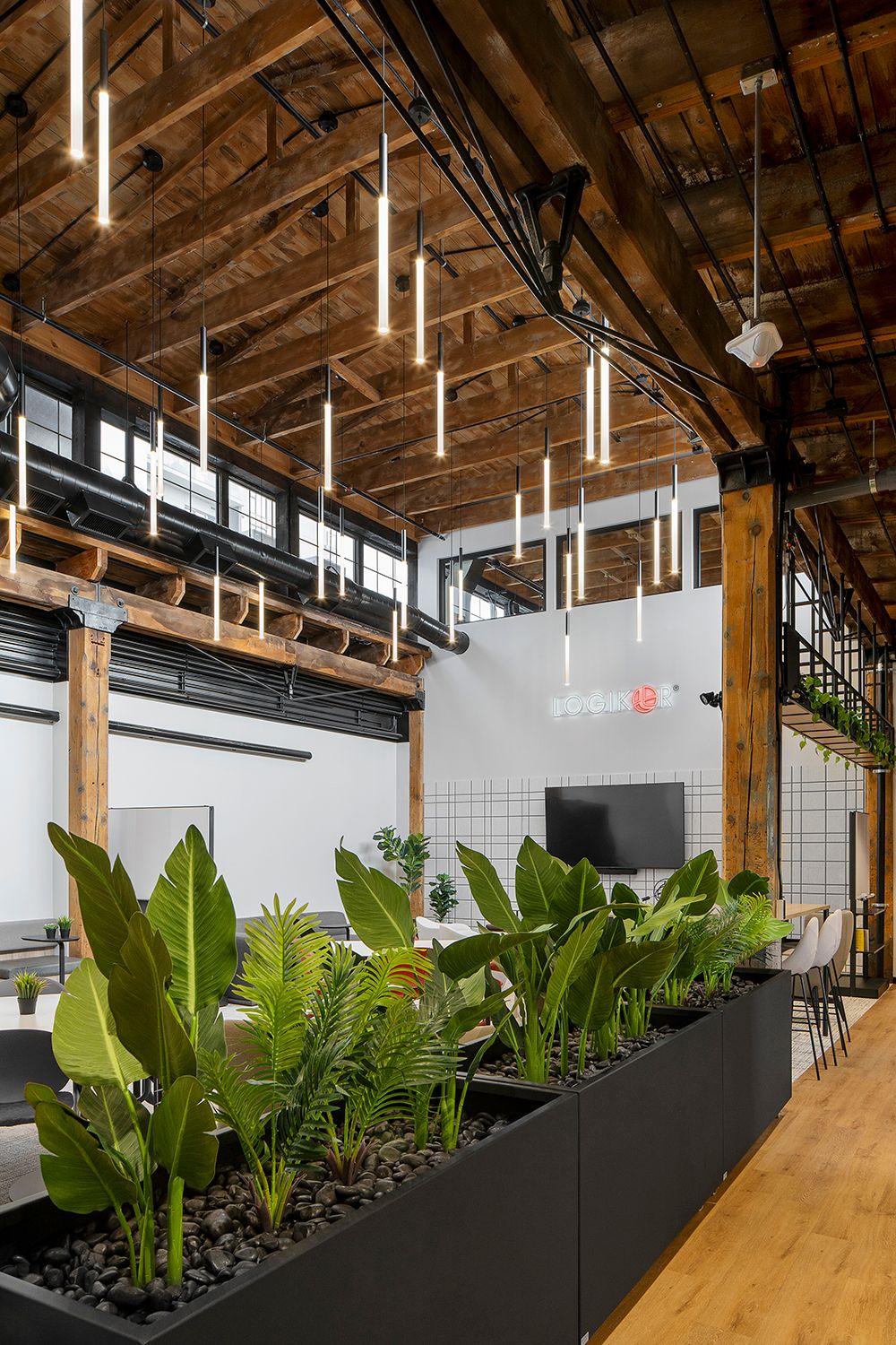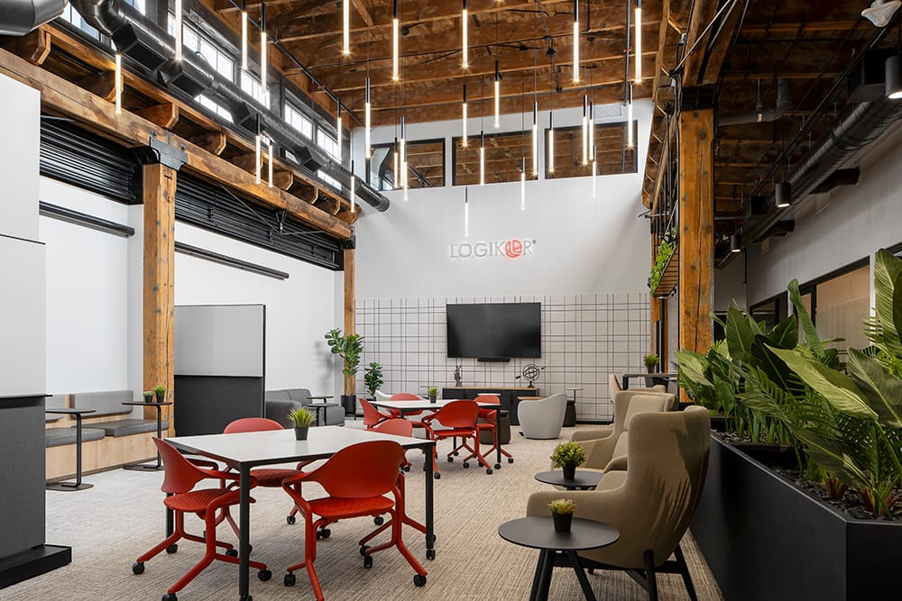Tucked inside a heritage building, the new Logikor headquarters is a masterclass in balancing raw character with modern workplace needs. Timber beams and exposed ductwork speak to the building’s industrial past, while sleek furnishings, layered textures, and warm lighting bring it confidently into the present.