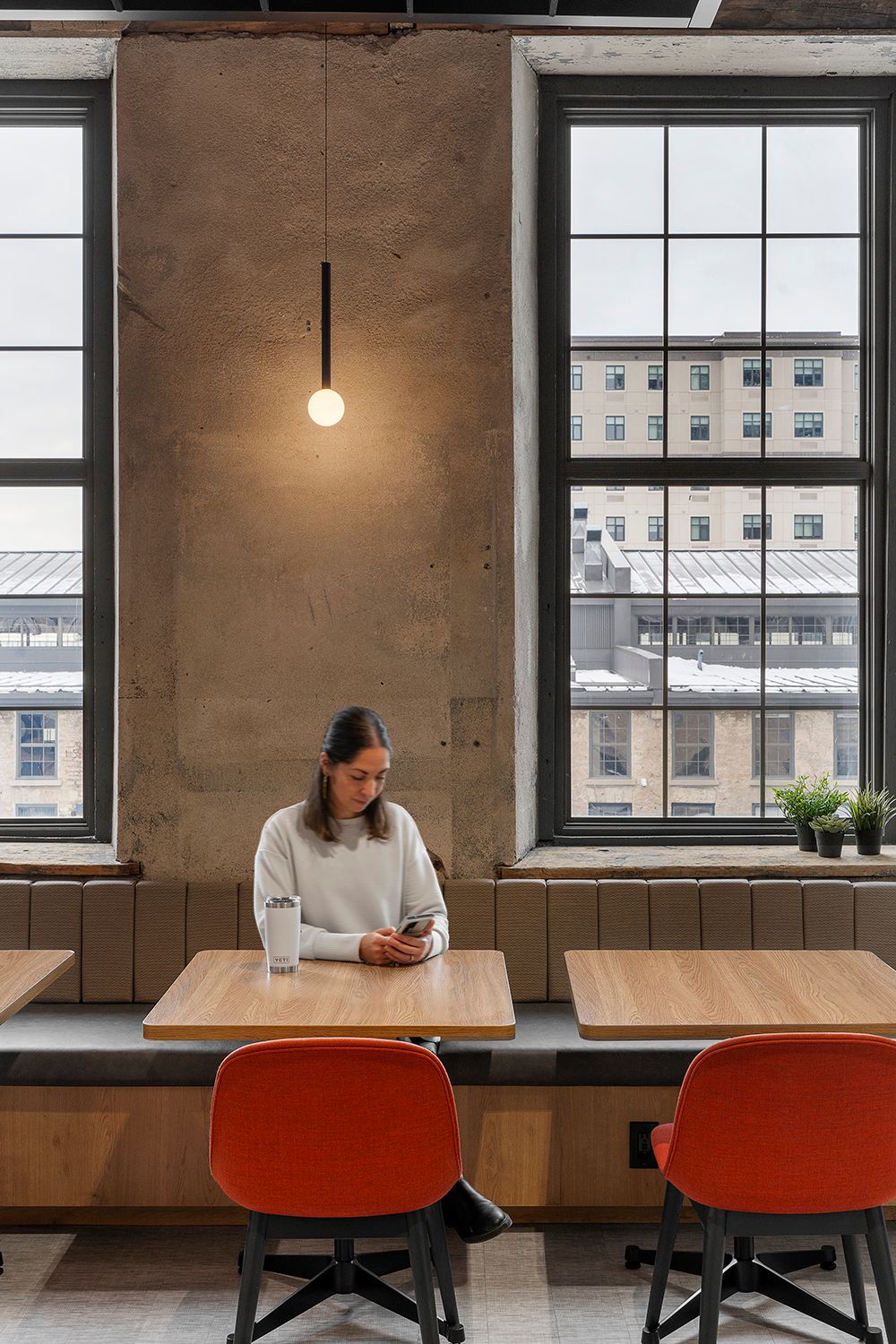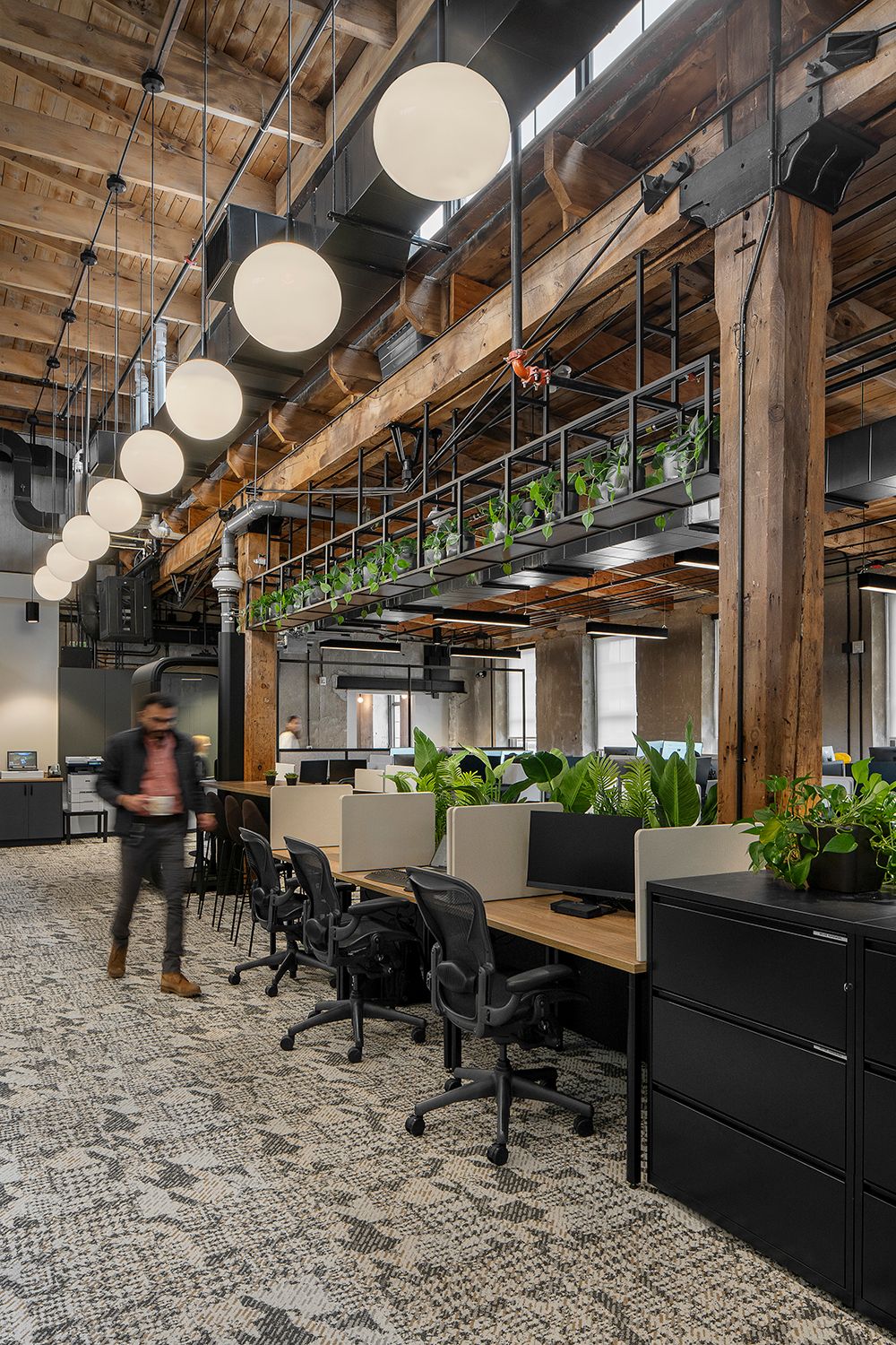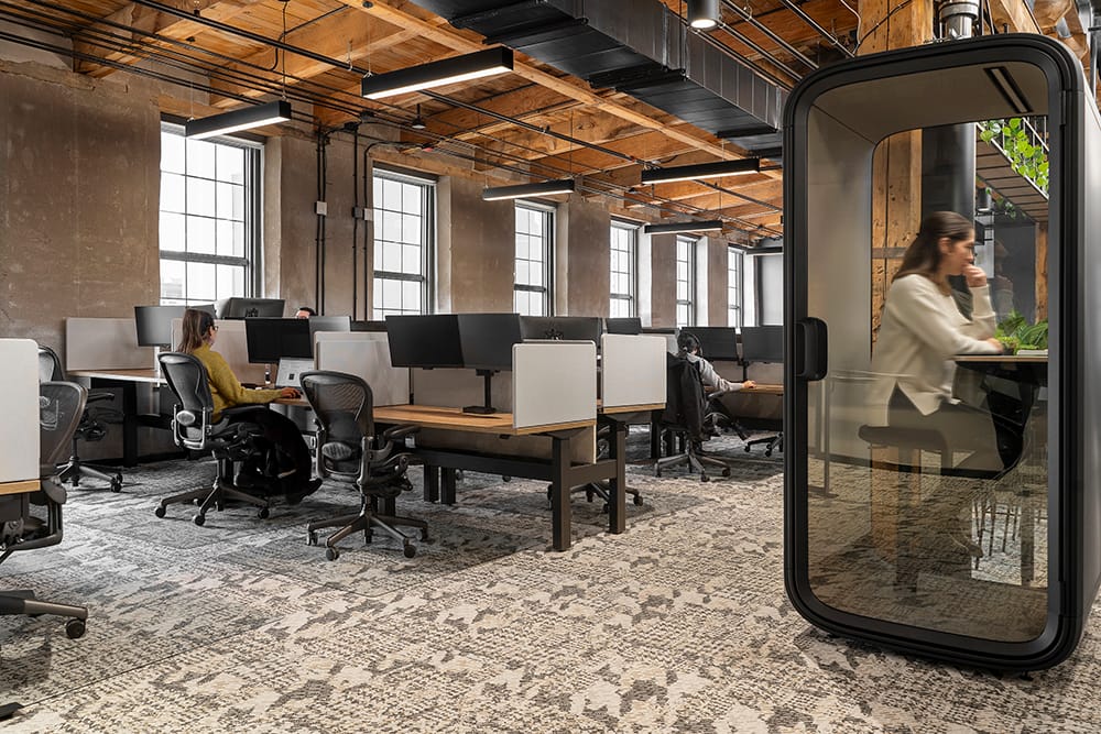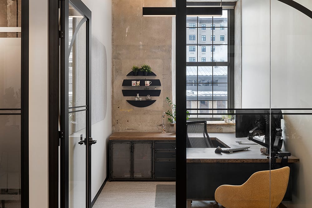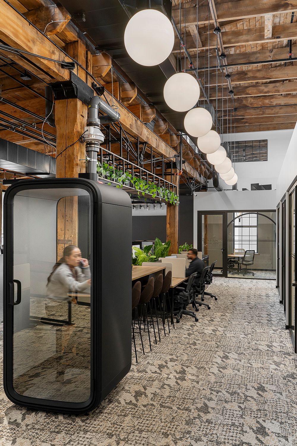 It’s a workplace that supports both collaboration and quiet — fluid and flexible, much like the company it houses.