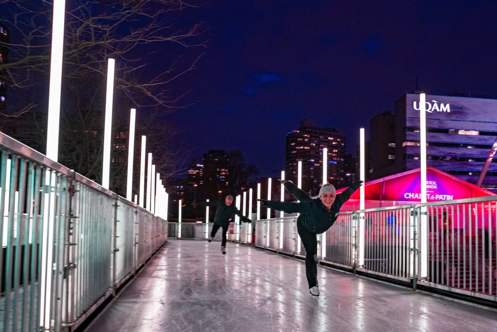 Situated in the lively Place des Festivals, the Skating Loop is surrounded by warmth and hospitality. Heated oases, including a cozy chalet and a covered terrace at the SAQ Bistro, ensure skaters remain comfortable despite the chilly outdoor setting. These thoughtful additions create an inviting atmosphere, allowing participants to enjoy and relax after their skating adventures, further cementing the Skating Loop as a prime destination for locals and tourists alike.