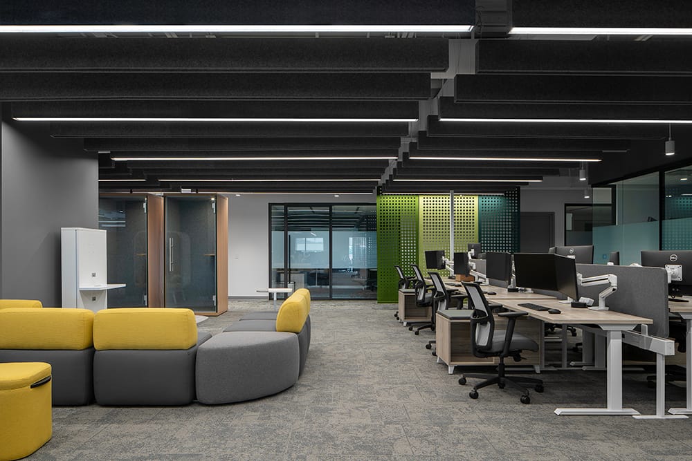The transformation included an extensive interior overhaul and an exterior facelift. Exterior upgrades featured Graphenstone Canada paint for the brickwork, new siding, additional windows to enhance natural light, and brand-new roofing. Inside, the modern design boasts sound baffles, modular office glazing, a striking 30-foot moss wall, and ergonomic office furniture, all curated to foster the dynamic energy of the PowerCo team.